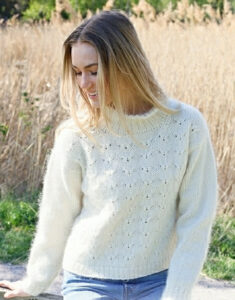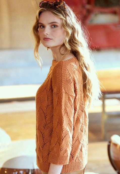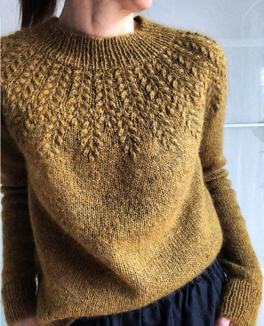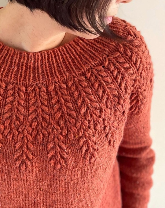 Мягкий и уютный свитер с красив узором из колосков по кокетке. Вяжется сверху в низ, по кругу, без швов. Прекрасно подходит и под брюки, и под юбку. Удобен для любого времени года. Читать далее